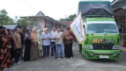 Dan Ketua Dharma Wanita Kabupaten Batubara Ny Sakti Alam Siregar bersama tim Provinsi ke Desa Sumber Padi Kecamatan Lima Puluh. (zo)
