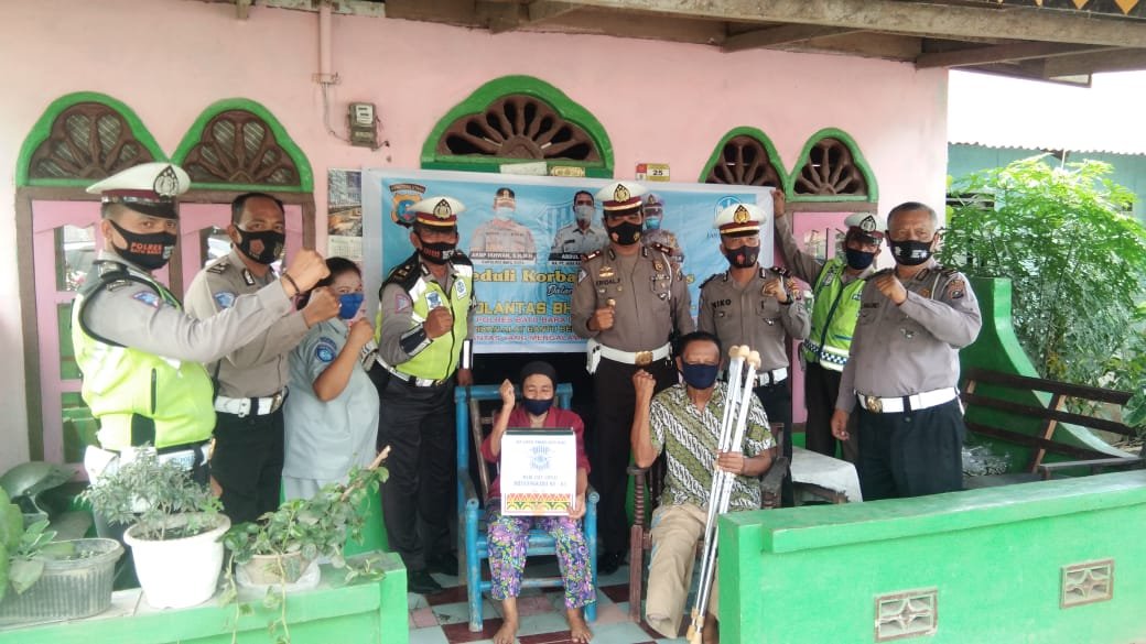 BATU BARA.Ersyah.com l Kapolres Batubara AKBP Ikhwan Lubis SH MH melalui Kasat Lantas AKP Edridal Fitra SH MH bersama Nesti Sitorus dari PT Jasa Raharja Kisaran, menyerahkan bantuan kepada korban tabrak lari, Senin (21/9).