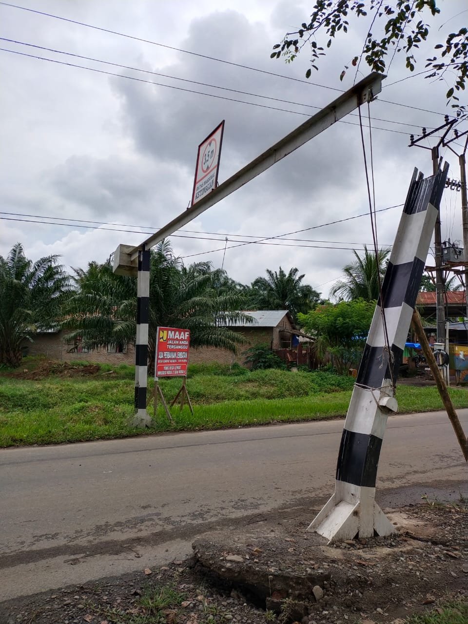 BATU BARA.Ersyah.com l Portal yang dipasang Dinas Perhubungan Kabupaten Batubara di Jalan Perintis Kemerdekaan Lima Puluh dekat blok 8 Kelurahan Lima Puluh menuju Simpang Dolok, Jum’at (27/11/2020) rusak.