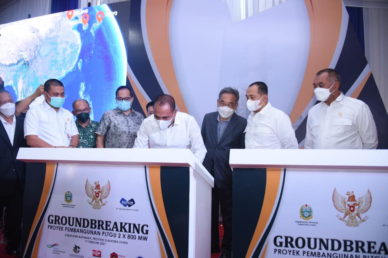 BATU BARA.Ersyah.com l Gubernur Sumatera Utara (Gubsu) Edy Rahmayadi bersama Bupati Batubara Ir Zahir MAP meresmikan Groudbreaking proyek pembangunan Pembangkit Listrik Tenaga Gas dan Uap (PLTGU) 2 × 800 Mw di Kabupaten Batubara, Rabu (16/2/21) di Desa Perupuk, Kecamatan Lima Puluh Pesisir, Batubara.