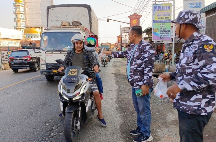 Dalam pembagian takjil dibantu Personil Sat Lantas Polres Batubara.