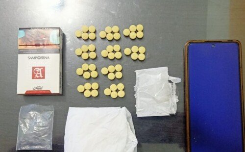Dalam penangkapan tersebut, petugas menemukan 50 butir pil berwarna kuning berlogo apel yang diduga kuat narkotika jenis ekstasi dengan berat brutto 19,42 gram.