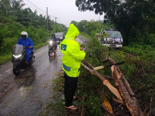 Petugas turut memberikan himbauan kepada pengendara agar lebih berhati-hati, terutama saat cuaca hujan yang rawan menyebabkan pohon tumbang dan jalan licin.