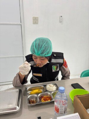Tim Dokkes Polres Batubara saat memeriksa makanan dari dapur SPPG Polres Batubara sebelum disalurkan ke 1.281 pelajar.(Foto. Humas Pol BB)