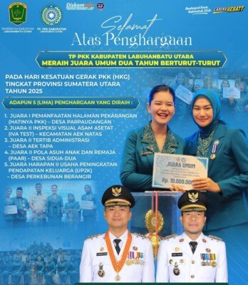 LABURA.Ersyah.com l Tim Penggerak Pemberdayaan dan Kesejahteraan Keluarga (TP PKK) Kabupaten Labura berhasil mempertahankan gelar Juara Umum untuk dua tahun berturut-turut dalam peringatan Hari Kesatuan Gerak (HKG) PKK Tingkat Provinsi Sumatera Utara (Sumut) tahun 2025.