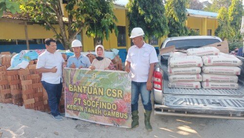 Bantuan tersebut diserahkan Pjs Pengurus Socfindo Kebun Tanah Gambus Roniawan Sinaga melalui Kepala Tata Usaha (KTU), Fitra Ricardo, didampingi Asisten Iqbal Koyoto, kepada perwakilan pihak sekolah.