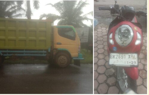 Sebuah sepeda motor Honda Scoopy BK 5200 XBK menghantam bagian belakang truk Mitsubishi Colt Diesel BK 8865 GB yang tengah parkir menunggu giliran pengisian BBM. Insiden ini merenggut nyawa seorang balita.