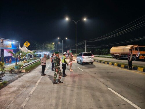 Dipimpin Ipda Wira Hidayat, personil melakukan pengaturan lalu lintas malam hari dan live report guna memastikan arus kendaraan tetap lancar dan aman hingga larut malam.