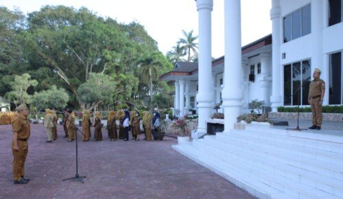Ia juga memberi penekanan serius pada aspek disiplin ASN, khususnya ketepatan waktu dan kelengkapan atribut dinas.