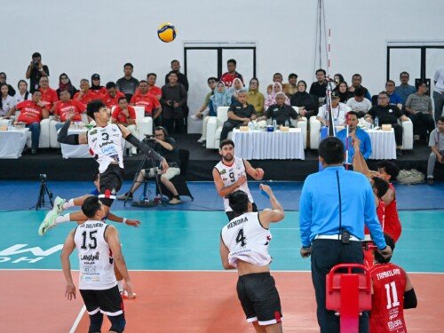Antusiasme memuncak saat dua raksasa voli putra Indonesia, Jakarta Bhayangkara Presisi berhadapan dengan Jakarta Lavani Livin’ Transmedia.