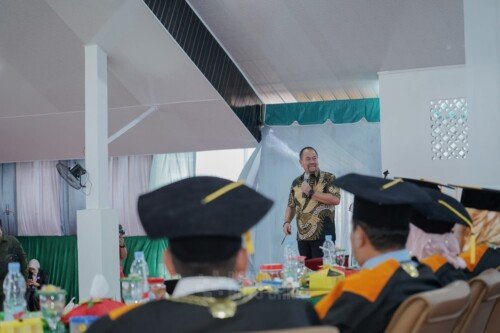 “Wisuda bukan garis finis. Ini titik start. Jangan puas hanya S1. Kejar S2, kejar S3. Siapa yang berhenti belajar, akan tertinggal,”ucap Baharuddin di hadapan ribuan peserta wisuda.
