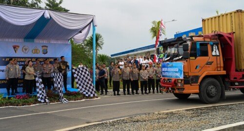 Dalam kunjungan itu, Kapolri berkesempatan melepas 22 kontainer bantuan kemanusiaan untuk korban bencana di wilayah Sumatera.