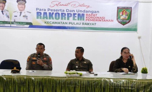 Kegiatan dipimpin Camat Pulau Rakyat, Romadhansyah Siagian, dihadiri perwakilan Polsek Pulu Raja, Kepala Desa se-Kecamatan Pulau Rakyat, Kepala UPTD/Korwil se-Kecamatan Pulau Rakyat.