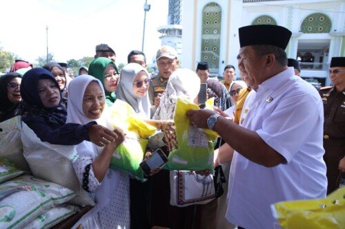 Usai melaksanakan zikir, Bupati dan Wakil Bupati meninjau Gerakan Pasar Murah yang dilaksanakan di halaman Masjid Agung H Achmad Bakrie Kisaran. (PMN10)