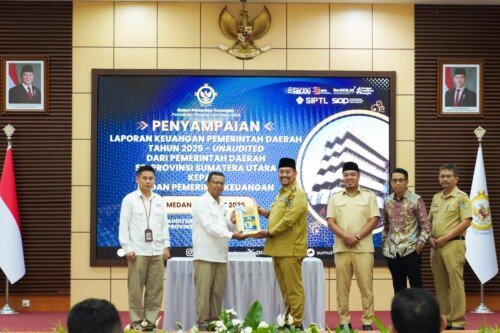 Atas dasar undang-undang, khususnya terkait transparansi dan akuntabilitas pengelolaan Anggaran Pendapatan Belanja Daerah (APBD), Bupati H. Baharuddin Siagian menyerahkan Laporan Keuangan Pemerintah Daerah (LKPD) tahun 2025 kepada Badan Pemeriksa Keuangan (BPK) RI Perwakilan Sumatera Utara (Sumut).