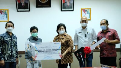 Foto: Direktur Pelaksana PT Inalum Sophia I Wattimena saat menyerahkan batuan 5 Unit Arm Roll kepada Bupati Karo Cory Sriwaty Sibayang.(ersyah/ist)…
