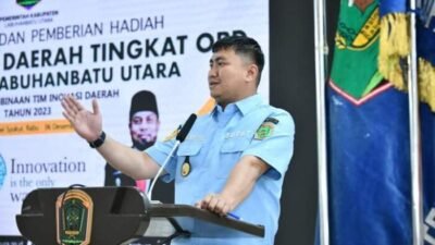 LABURA.Ersyah.com l Bupati Labura Hendriyanto Sitorus SE MM berasama Wakilnya H Samsul Tanjung ST MH menyerahkan hadiah lomba inovasi daerah…