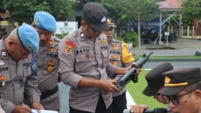 BATUBARA.Ersyah.com l Polres Batubara menggelar pemeriksaan senjata api (senpi) dan amunisi personil dalam apel, Senin (23/12/2024) di halaman Mapolres Batubara….