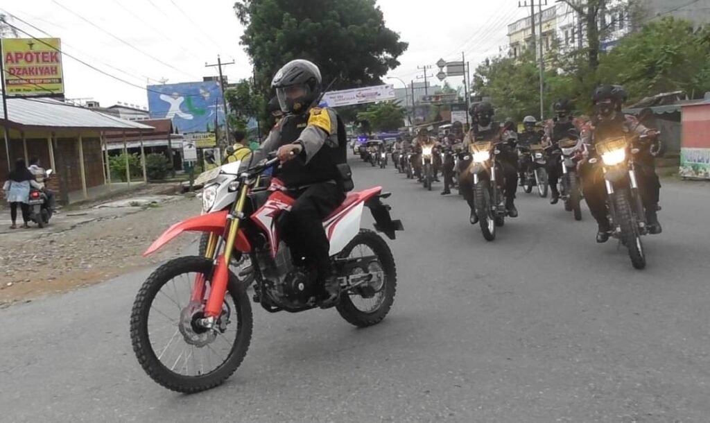 LABUHANBATU.Ersyah.com l Kapolres Labuhanbatu AKBP Deni Kurniawan SIK MH memimpin apel gelar pasukan dan pergeseran pasukan serta Patroli show off force…