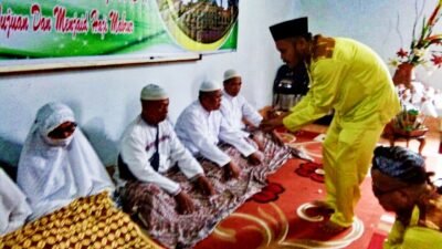BATUBARA.Ersyah.com l Kepala Desa Suka Raja M.Rafiq melaksanakan upah-upah, tepung tawari dan doa bersama Calon Jemaah Haji (Calhaj) yang hendak berangkat…