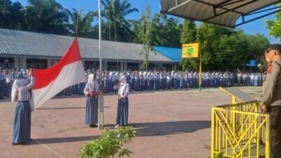 BATUBARA.Ersyah.com l Kanit Binmas Polsek Labuhan Ruku, Iptu Ahmad Fahmi, bertindak sebagai pembina upacara dalam program “Police Goes To School”,…