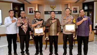 MEDAN.Ersyah.com l Pejabat Gubernur Sumatera Utara (Pj Gubsu) Hassanudin beri piagam penghargaan kepada Kapolrestabes Medan Kombes Pol Valentino Alfa Tatareda…