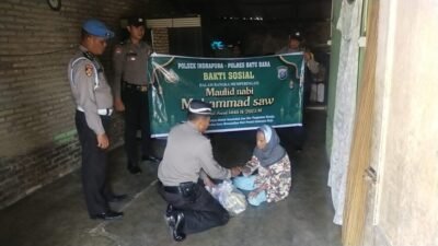 BATUBARA.Ersyah.com l Dalam Rangka memperingati Maulid Nabi Muhammad SAW, Kapolsek Indrapura melalui Kanit Binmas lptu Surianto berasama personil berbagi kebahagiaan…