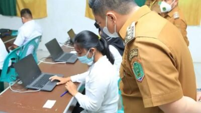 LABURA.Ersyah.com l Bupati Labura Hendriyanto Sitorus SE MM bersama Wakil H Samsul Tanjung ST MH memantau langsung pelaksanaan ujian P3K…