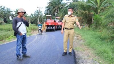 LABURA.Ersyah.com I Wakil Bupati (Wabup) Labura H Samsul Tanjung ST MH meninjau langsung pengaspalan hotmix di ruas jalan Pinang Lombang…