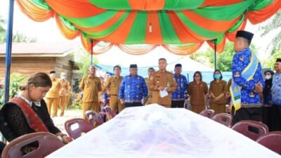 LABURA.Ersyah.com l Bupati Labura Hendriyanto Sitorus SE MM bertindak sebagai Inspektur upacara pemberangkatan Almarhumah Tiadar Sitorus. Senin (31/10/22) di Dusun…