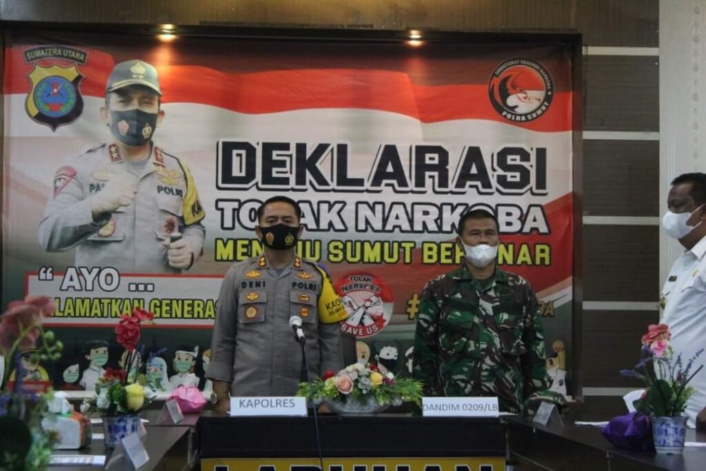 LABUHANBATU.Ersyah.com l Kapolres Labuhanbatu AKBP Deni Kurniawan SIK MH bersama Dandim 0209 / LB diwakili Mayor Inf Santoso, mengikuti Zoom meeting…
